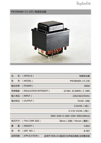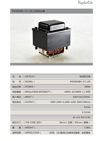 Raphaelite 300W power transformer 3.5V for 300B,2A3 amp