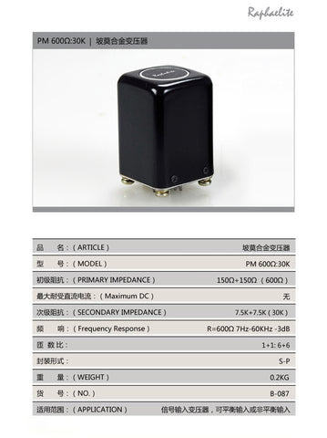 Fully Coupled 600:30K (1+1:6+6) Permalloy Input Transformer Balanced Input