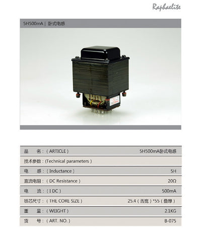 Raphaelite 5H 500mA horizontal inductor for DIY tube amp